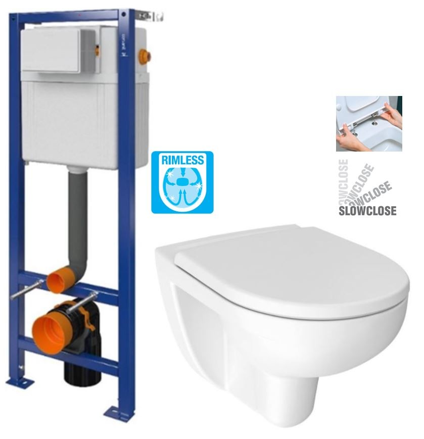 WC kombi RIMLESS /bez splachovacího kruhu/ = je moderní systém splachování, který se charakterizuje znamenitou funkčností a vysokou hygienou oproti běžným klozetům se splachovacím kruhem. U běžných klozetů může docházet k zachycování nečistot ve splachovacím kruhu pod okrajem mísy. Současný systém zajišťuje dokonalý rozvod vody a jednoduché čištění - veškerý prostor uvnitř mísy je smaltovaný a jednoduše čistitelný.