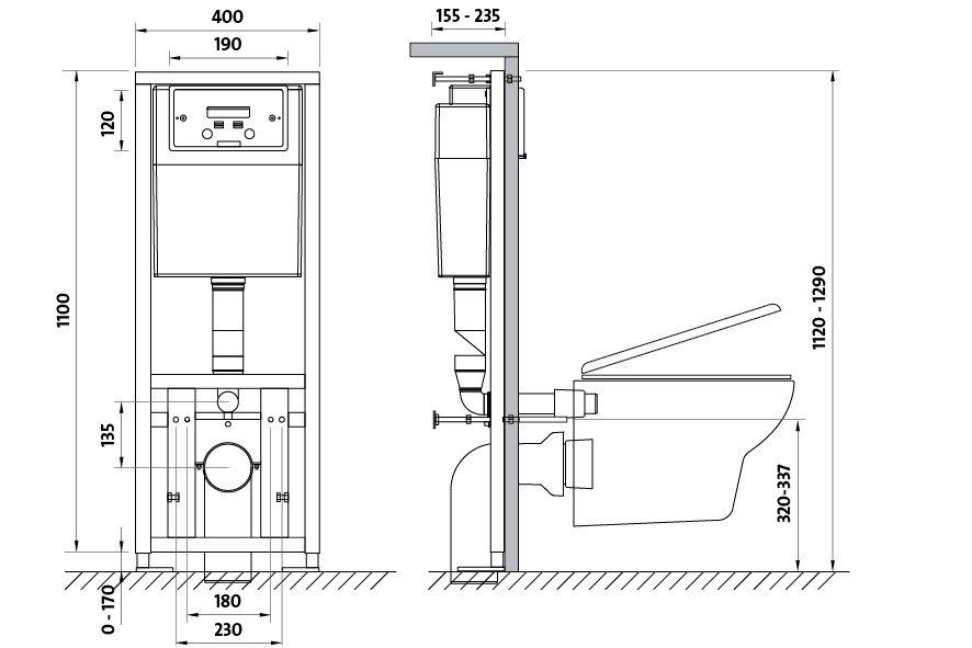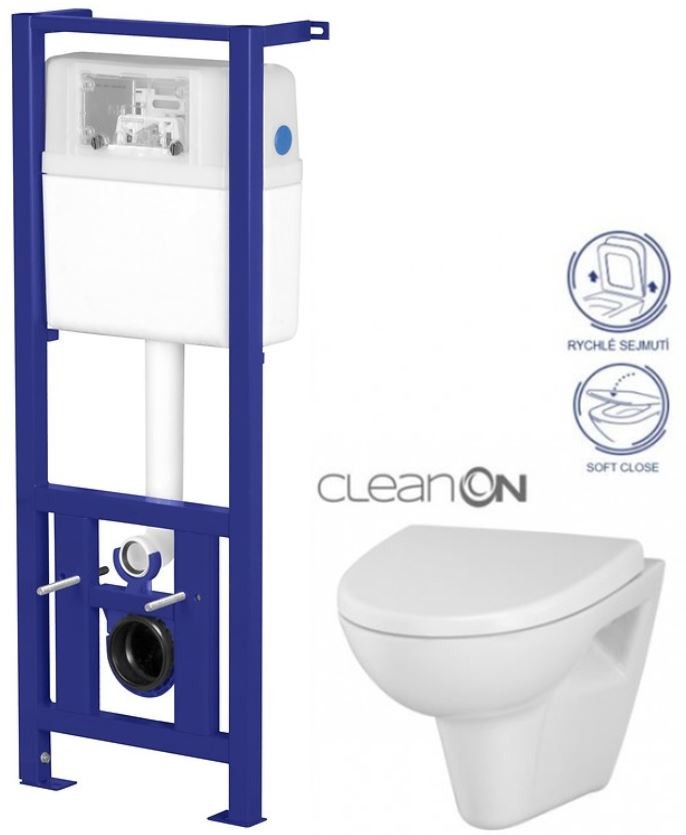 Závěsná mísa PARVA Clean ON elegantního vzhledu s horizontálním odpadem. Funkce splachování 2,5/5, 3/5l.