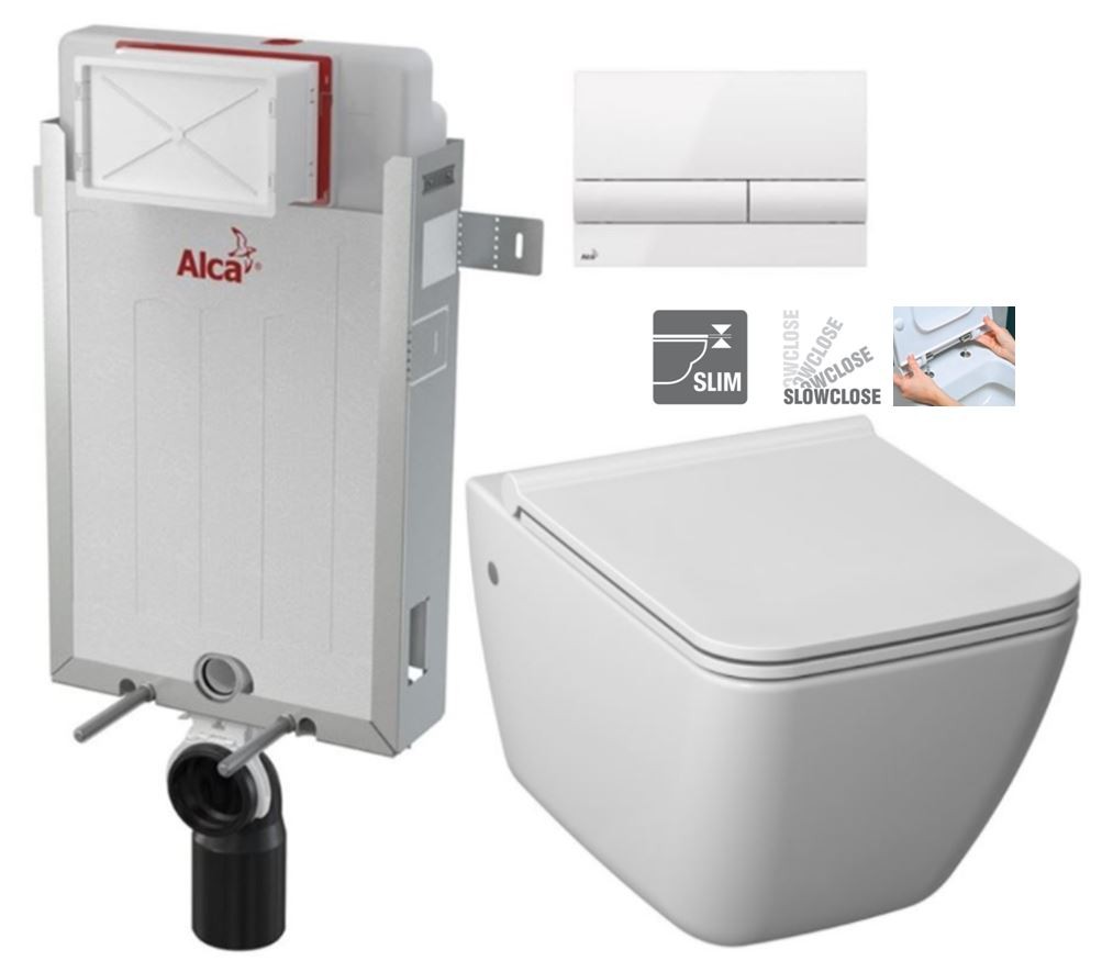 Pozor na výšku osy odpadu, která je oproti běžným klozetům o 3 cm výš. Správné nastavení vypouštěcího ventilu v podomítkovém modulu je splachovací množství 4,5/3l.