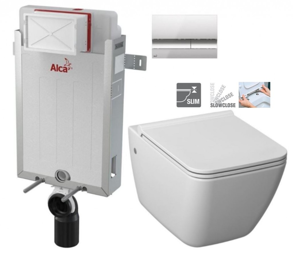 Pozor na výšku osy odpadu, která je oproti běžným klozetům o 3 cm výš. Správné nastavení vypouštěcího ventilu v podomítkovém modulu je splachovací množství 4,5/3l.