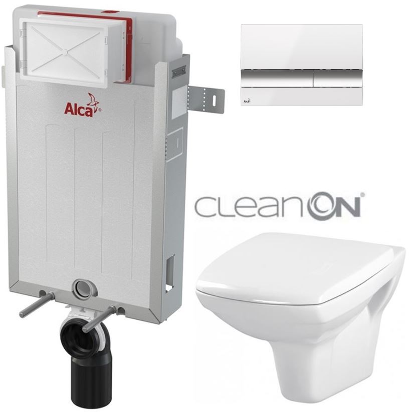 ALCA Renovmodul - předstěnový instalační systém s bílým/ chrom tlačítkem M1720-1 + WC CERSANIT CLEANON CARINA + SEDÁTKO (AM115/1000 M1720-1 CA1)