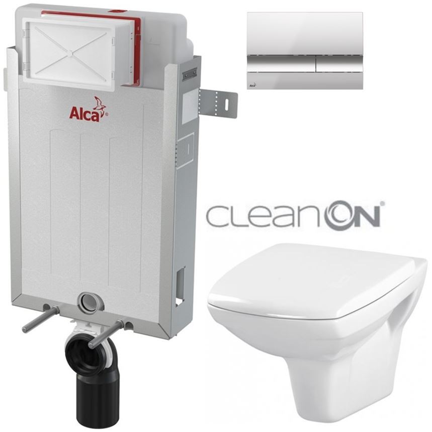 WC závěsná mísa CARINA NEW CleanOn elegantního vzhledu s horizontálním odpadem, funkcí splachování 2,5/5, 3/5l.