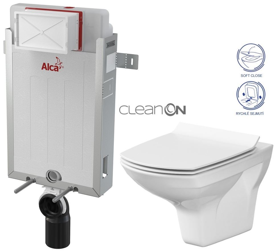 WC závěsná mísa CARINA NEW CleanOn elegantního vzhledu s horizontálním odpadem, funkcí splachování 2,5/5, 3/5l.