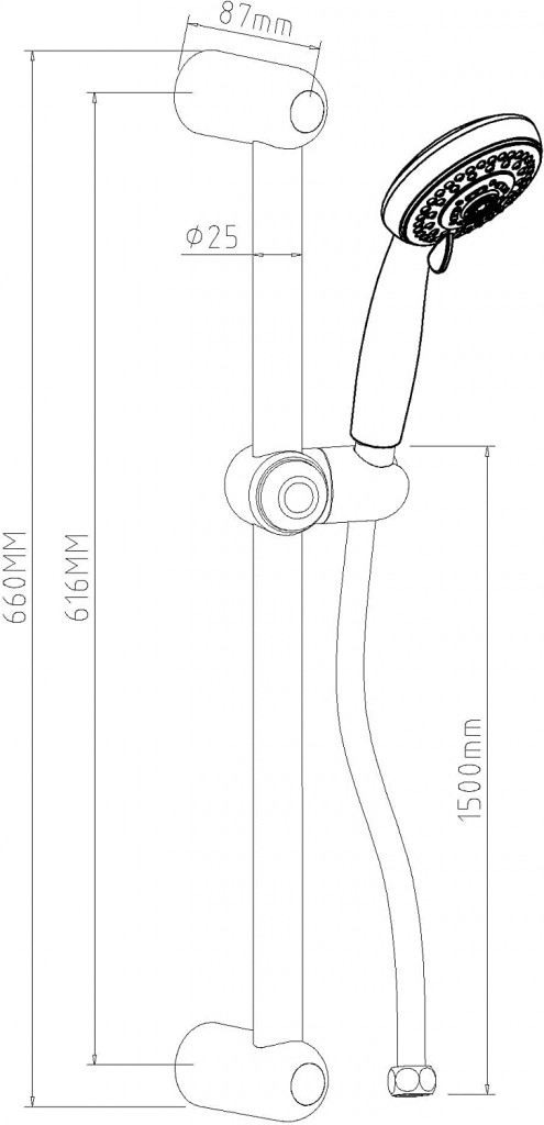 - Kovová sprchová tyč, délka: přibližně 60 cm