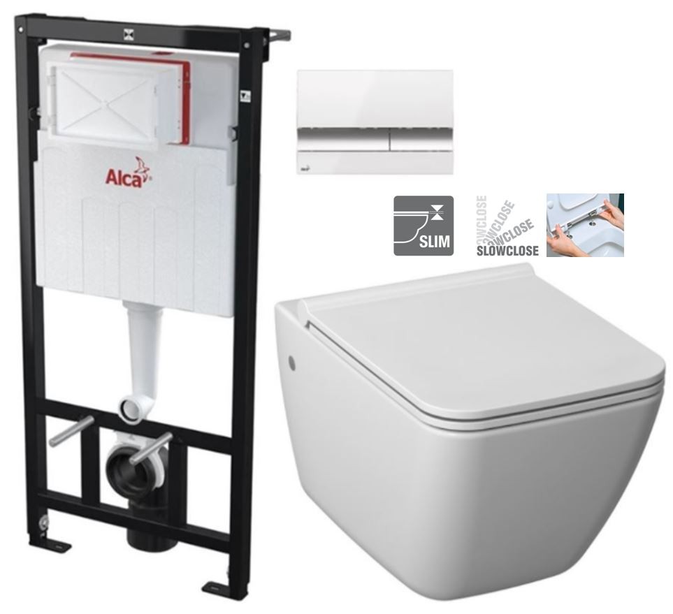 Pozor na výšku osy odpadu, která je oproti běžným klozetům o 3 cm výš. Správné nastavení vypouštěcího ventilu v podomítkovém modulu je splachovací množství 4,5/3l.