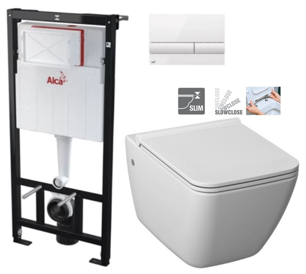 ALCA Sádromodul - předstěnový instalační systém s bílým tlačítkem M1710 + WC JIKA PURE + SEDÁTKO SLOWCLOSE (AM101/1120 M1710 PU2)