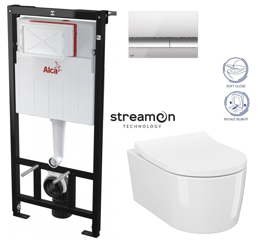 ALCA Sádromodul - předstěnový instalační systém s chromovým tlačítkem M1721 + WC CERSANIT INVERTO + SEDÁTKO DURAPLAST SOFT-CLOSE (AM101/1120 M1721 IN1)
