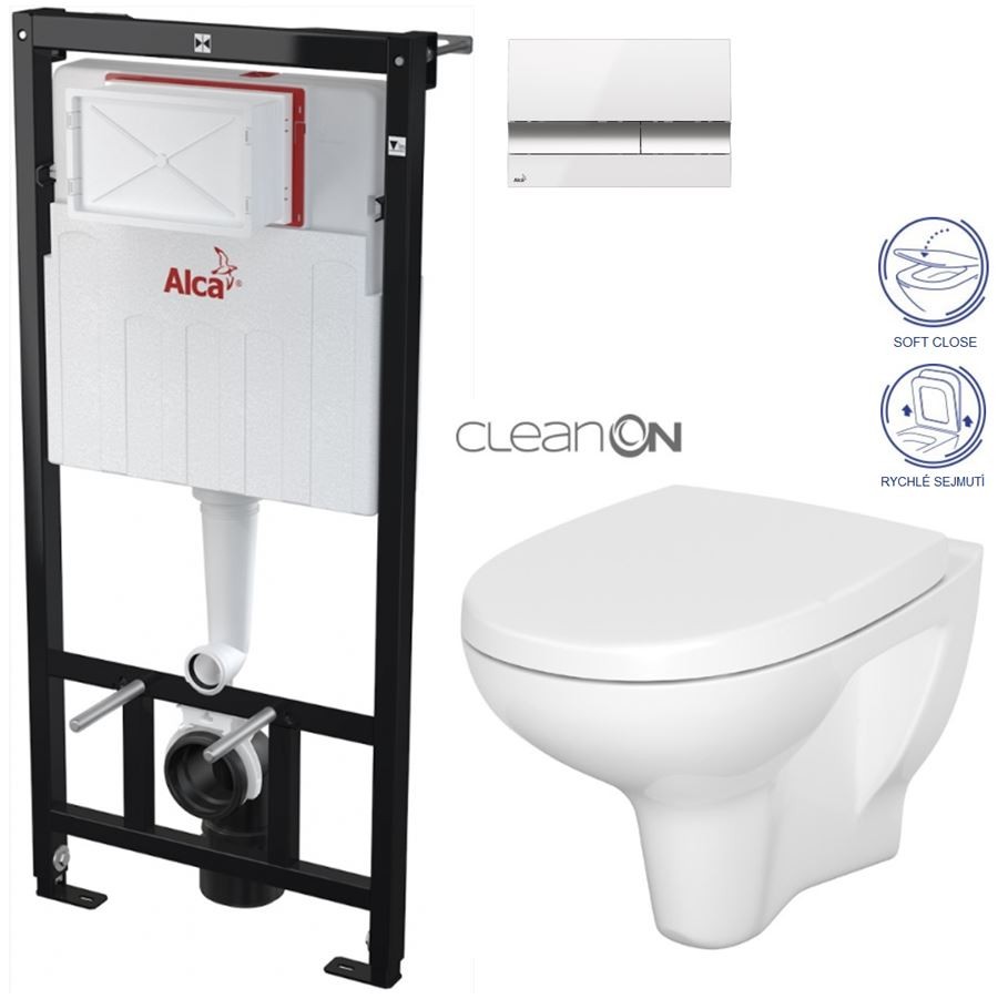 ALCA Sádromodul - předstěnový instalační systém s bílým/ chrom tlačítkem M1720-1 + WC CERSANIT ARTECO CLEANON + SEDÁTKO (AM101/1120 M1720-1 AT1)