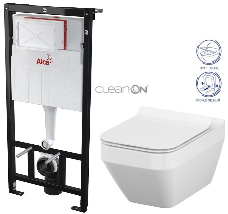 ALCA Sádromodul - předstěnový instalační systém bez tlačítka + WC CERSANIT CLEANON CREA čtverec + SEDÁTKO (AM101/1120 X CR2)