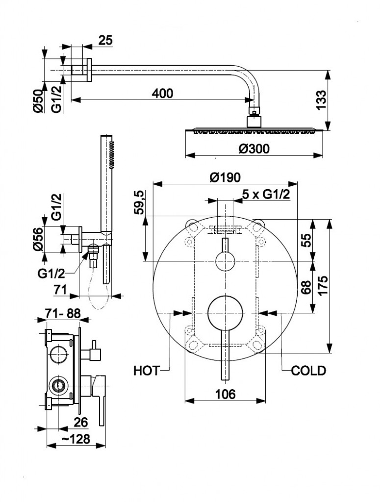 | Průtok vody [l/min] | rukojeť sprchy 15 / kotouč 19 |