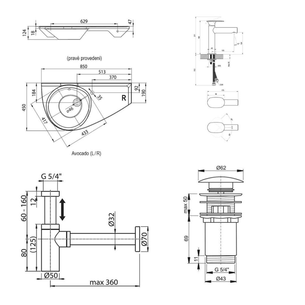 - vhodné pro umyvadla s přepadem a odtokem Ø 46 mm