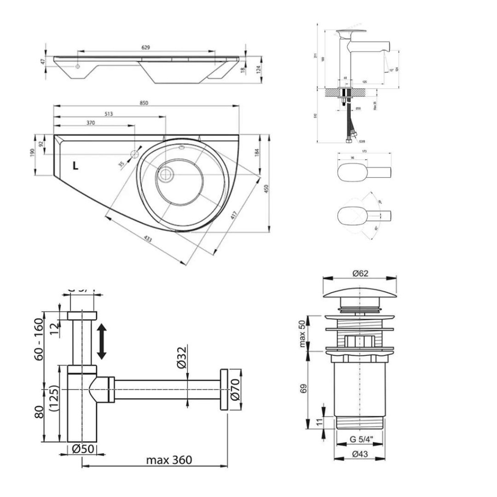 - vhodné pro umyvadla s přepadem a odtokem Ø 46 mm