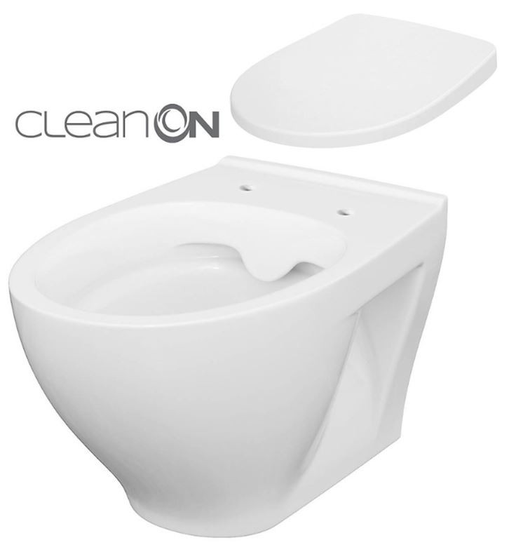 Oválná závěsná WC mísa MODUO s technologií CleanOn /bez oplachového kruhu/, kde se neshromžďují nečistoty jako ve standardních WC mísách s klasickým uzavřeným kruhem a jejich údržba je snažší a hygieničtější. WC mísa má úsporný oplach vody 3/5l.