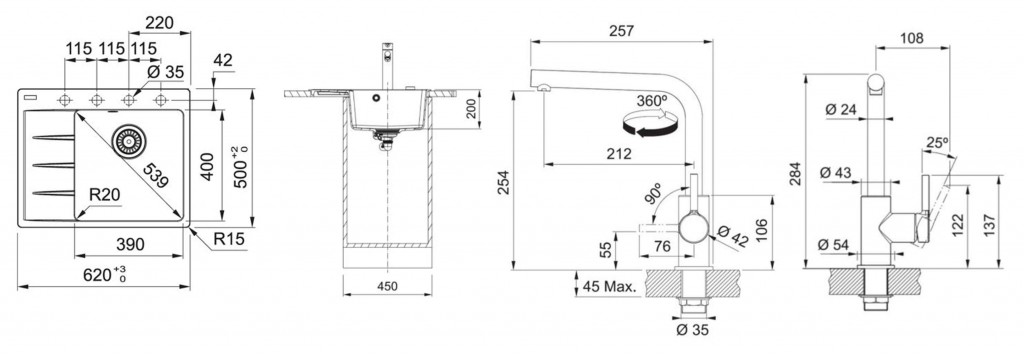 - sifon pro úsporu místa 6/4" s odbočkou na myčku