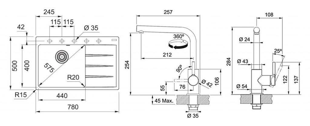 - sifon pro úsporu místa 6/4" s odbočkou na myčku