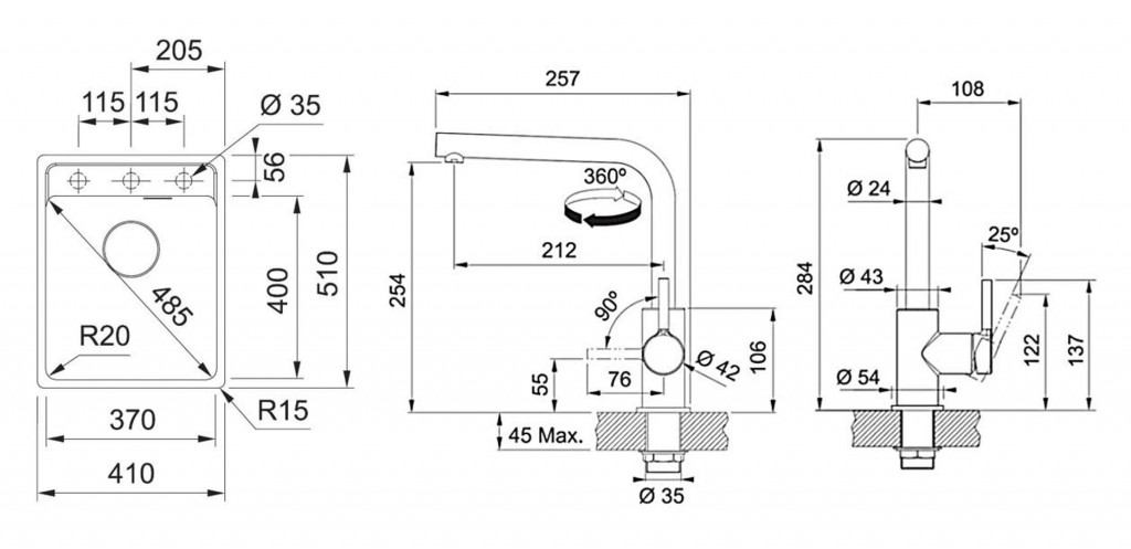 - sifon pro úsporu místa 6/4" s odbočkou na myčku