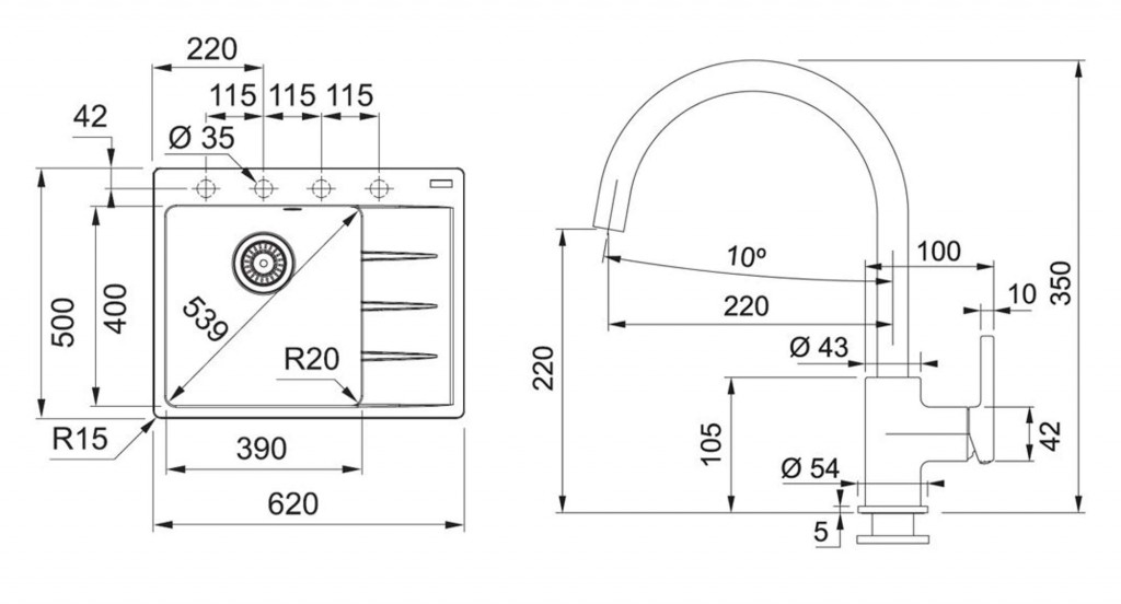 - sifon pro úsporu místa 6/4" s odbočkou na myčku