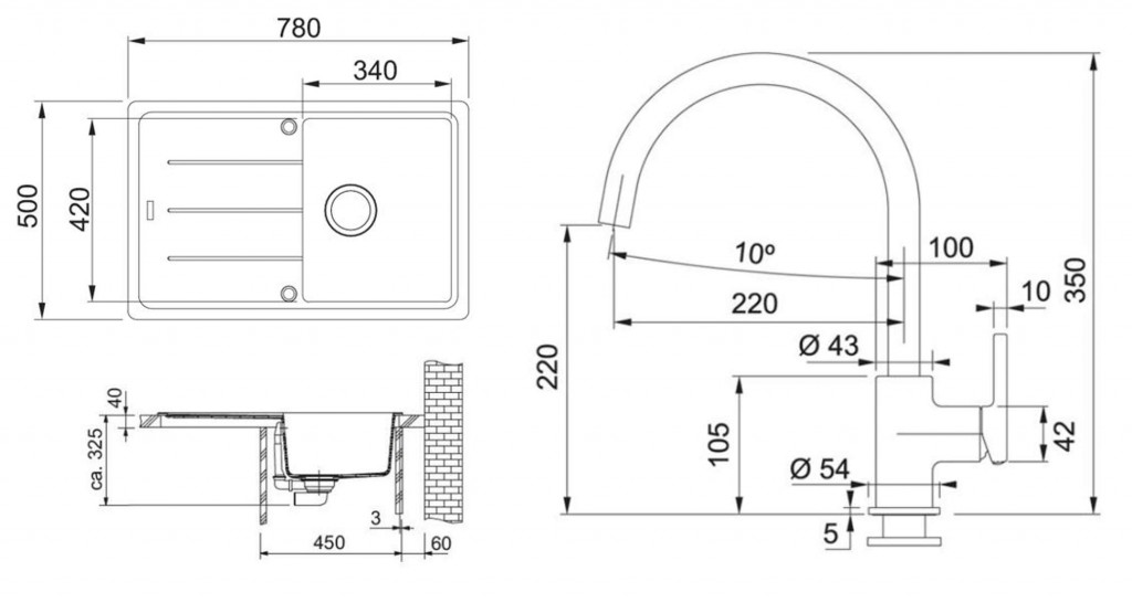 - odkapávací plocha variabilní, lze umístit vpravo i vlevo