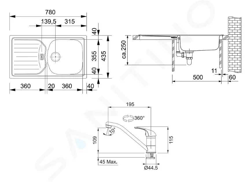 - reverzibilní, odkapávací plocha dle volby vpravo či vlevo