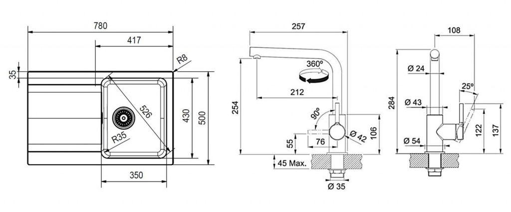 - odkapávací plocha variabilní, lze umístit vpravo i vlevo
