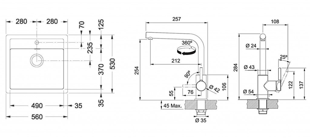 - sifon pro úsporu místa 6/4" s odbočkou na myčku