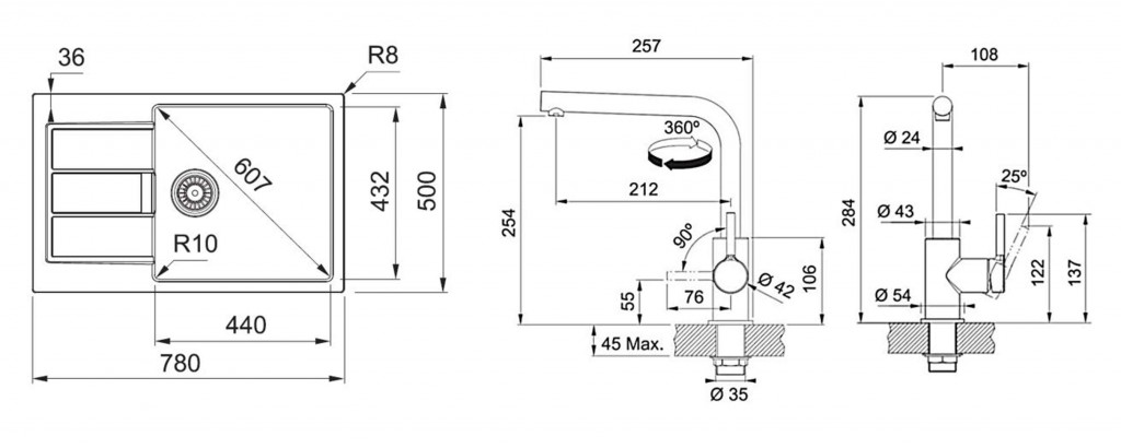 - odkapávací plocha reverzibilní, lze umístit vpravo i vlevo