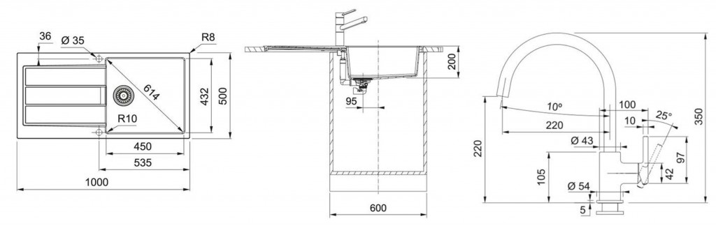 - odkapávací plocha reverzibilní, lze umístit vpravo i vlevo