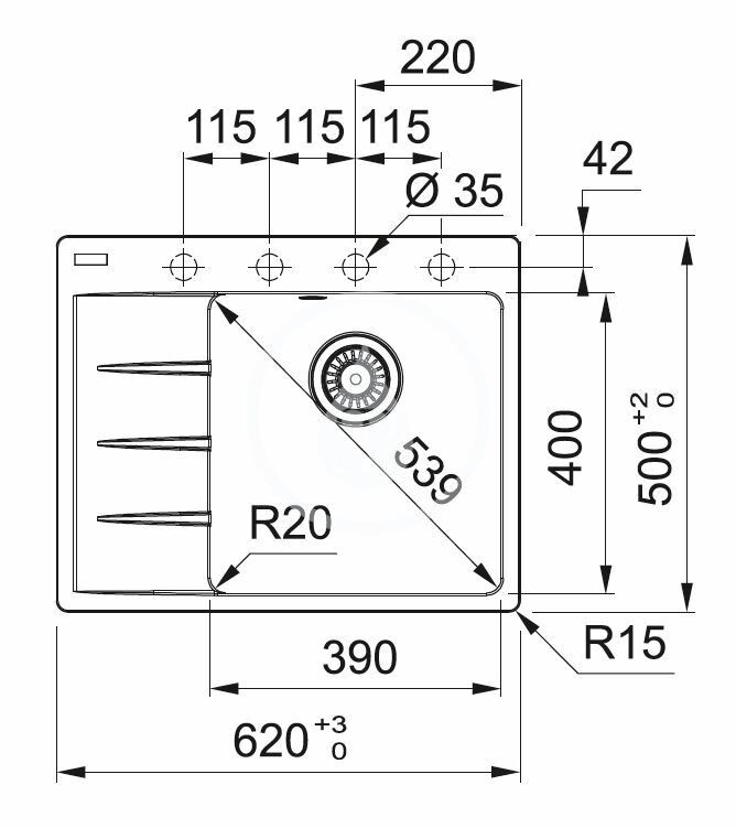 Fragranitový dřez CNG 611-62 TL/7, odkapávací plocha vlevo