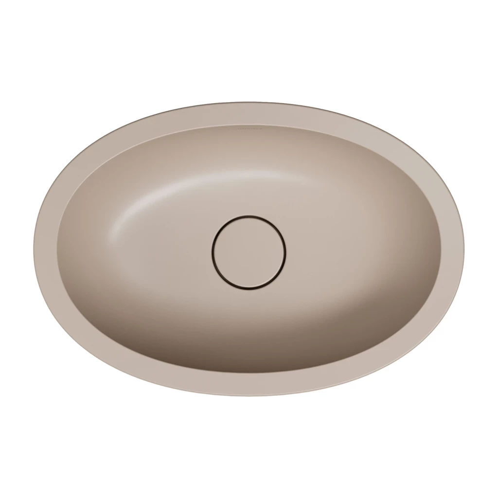 Umyvadlo SHELL v odstínu dune beige (RAL1019) je v tlumeném, zemitě béžovém odstínu se sametově hebkým matným povrchem.