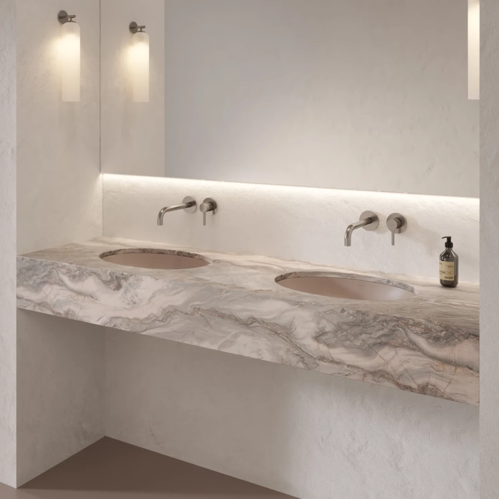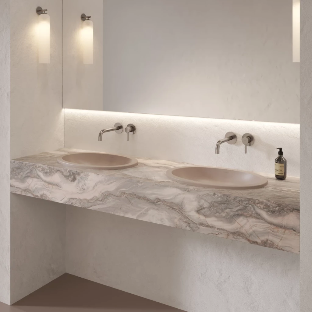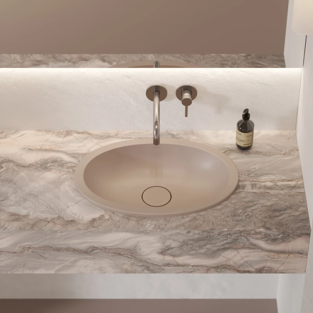 Umyvadlo pod desku z kolekce OMNIRES SHELL M+ se vyznačuje moderním eliptickým tvarem, který se zužuje k měkkému dnu. Jeho optimální rozměry jsou ideální pro koupelny s jedním i dvěma umyvadly. Precizně navržený okraj umožňuje instalaci pod desku a vytváří tak bezešvý a soudržný povrch. Umyvadlo lze také zapustit do pracovní desky, takže zůstane viditelný pouze minimalistický okraj. Obě montážní řešení nejen usnadňují každodenní údržbu, ale také optimalizují využití prostoru, díky čemuž je umyvadlo ideální volbou pro moderní a minimalistické interiéry.