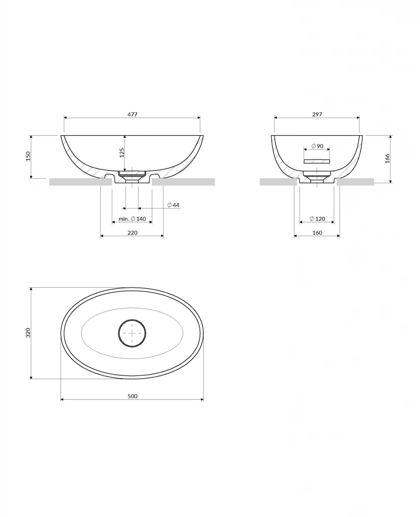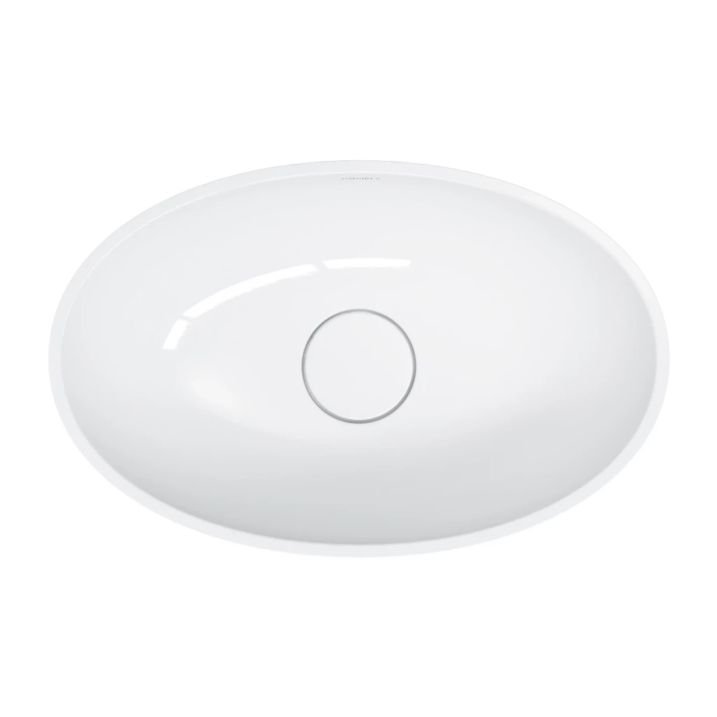 Umyvadlo na desku z kolekce OMNIRES SHELL M+ se vyznačuje moderním eliptickým tvarem, který se k základně zužuje jemnou linií. Minimalistický tvar působí lehce a zároveň pevně a vytváří efekt monolitu vytesaného ze skály. Uvnitř umyvadla nasazený kryt diskrétně zakrývá odtok, aniž by narušil harmonicky tvarovanou siluetu.