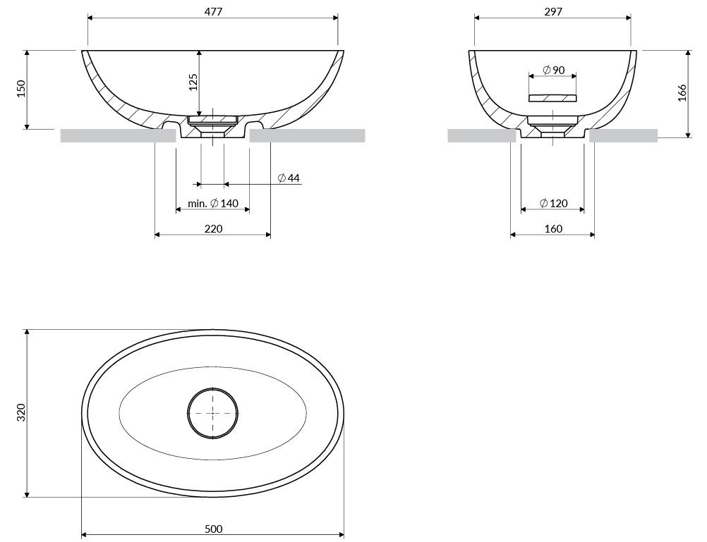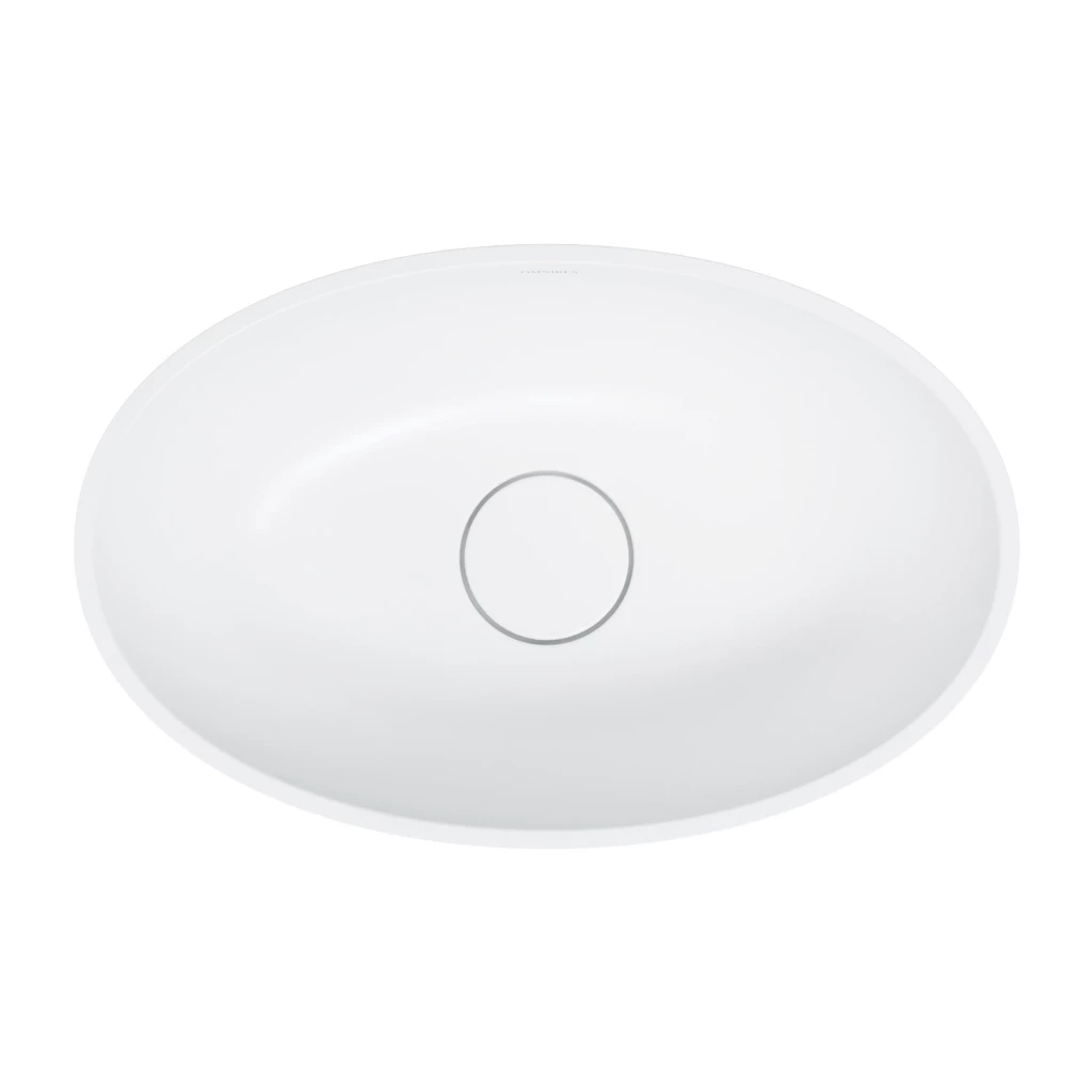 Umyvadlo na desku z kolekce OMNIRES SHELL M+ se vyznačuje moderním eliptickým tvarem, který se k základně zužuje jemnou linií. Minimalistický tvar působí lehce a zároveň pevně a vytváří efekt monolitu vytesaného ze skály. Uvnitř umyvadla nasazený kryt diskrétně zakrývá odtok, aniž by narušil harmonicky tvarovanou siluetu.