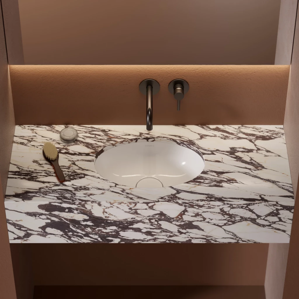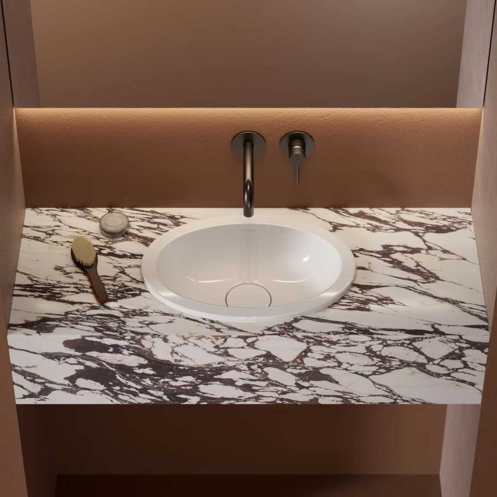 Umyvadlo pod desku z kolekce OMNIRES SHELL M+ se vyznačuje moderním eliptickým tvarem, který se zužuje k měkkému dnu. Díky kompaktním rozměrům je ideální volbou pro malé koupelny a toalety pro hosty. Precizně navržený okraj umožňuje instalaci pod desku a vytváří tak bezešvý a soudržný povrch. Alternativně lze umyvadlo zapustit do pracovní desky a ponechat na povrchu pouze minimalistický okraj. Obě montážní řešení nejen usnadňují každodenní údržbu, ale také optimalizují využití prostoru, díky čemuž je umyvadlo ideální volbou pro designy, kde se počítá na každém detailu a maximální využití dostupného prostoru je nezbytné.
