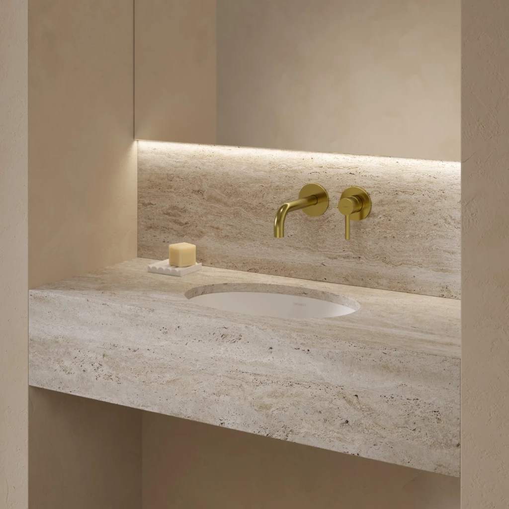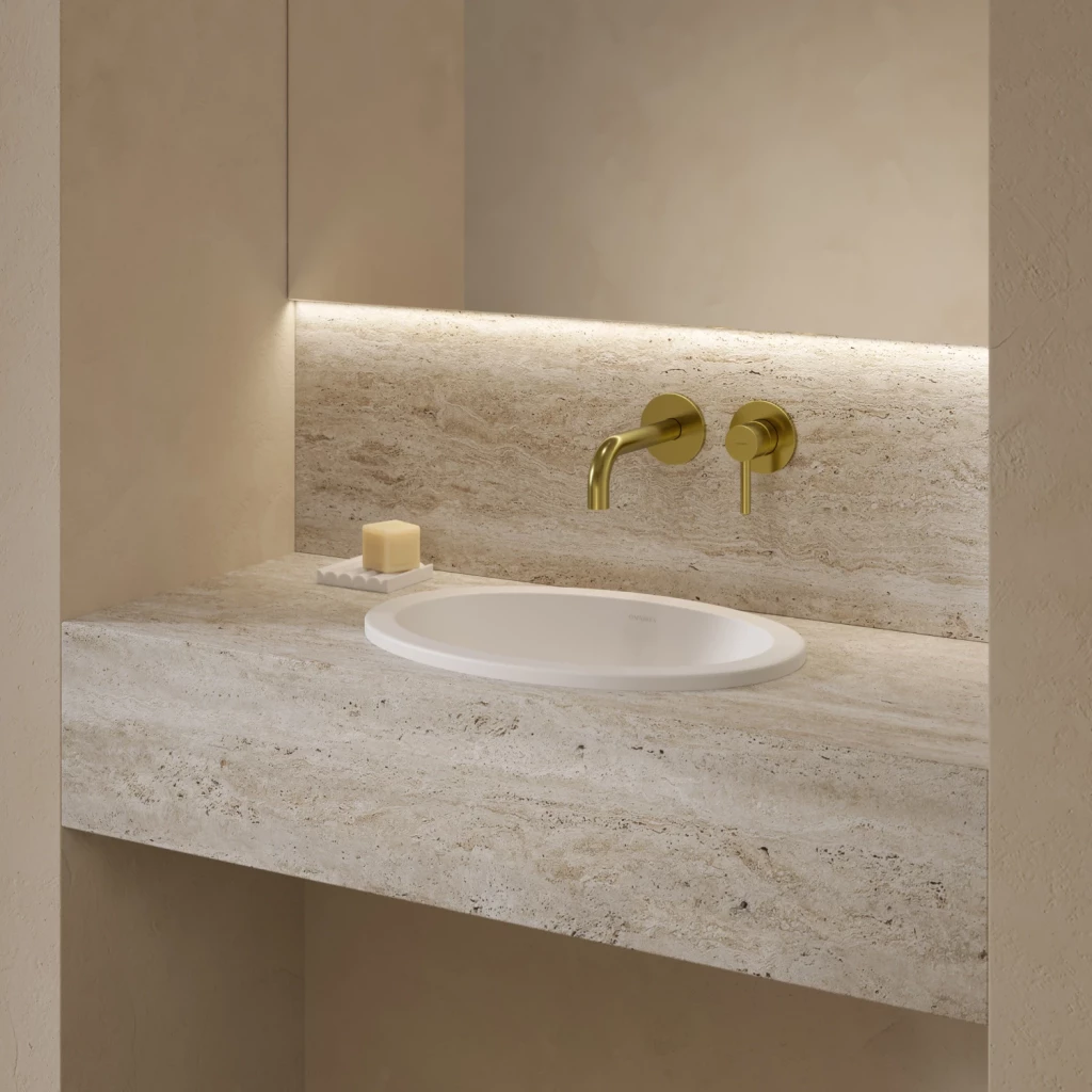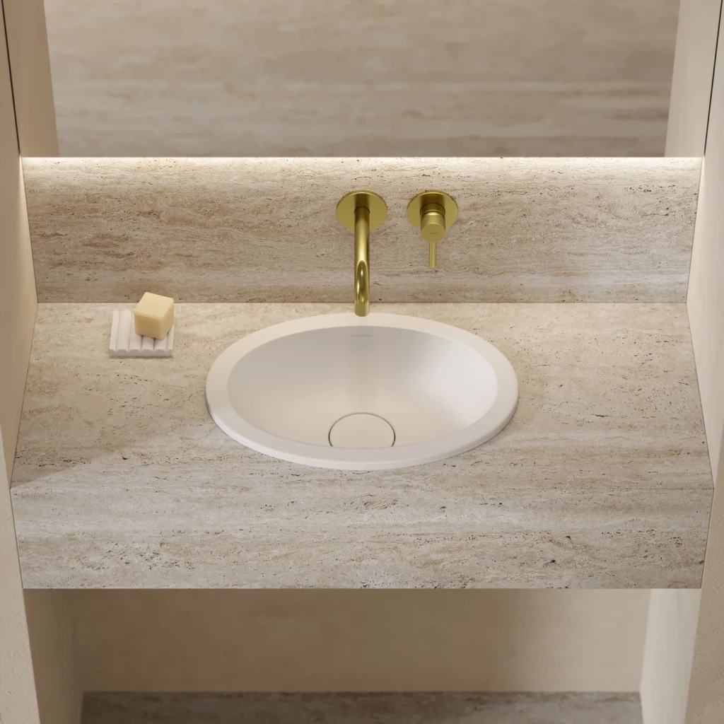 Umyvadlo pod desku z kolekce OMNIRES SHELL M+ se vyznačuje moderním eliptickým tvarem, který se zužuje k měkkému dnu. Díky kompaktním rozměrům je ideální volbou pro malé koupelny a toalety pro hosty. Precizně navržený okraj umožňuje instalaci pod desku a vytváří tak bezešvý a soudržný povrch. Alternativně lze umyvadlo zapustit do pracovní desky a ponechat na povrchu pouze minimalistický okraj. Obě montážní řešení nejen usnadňují každodenní údržbu, ale také optimalizují využití prostoru, díky čemuž je umyvadlo ideální volbou pro designy, kde se počítá na každém detailu a maximální využití dostupného prostoru je nezbytné.