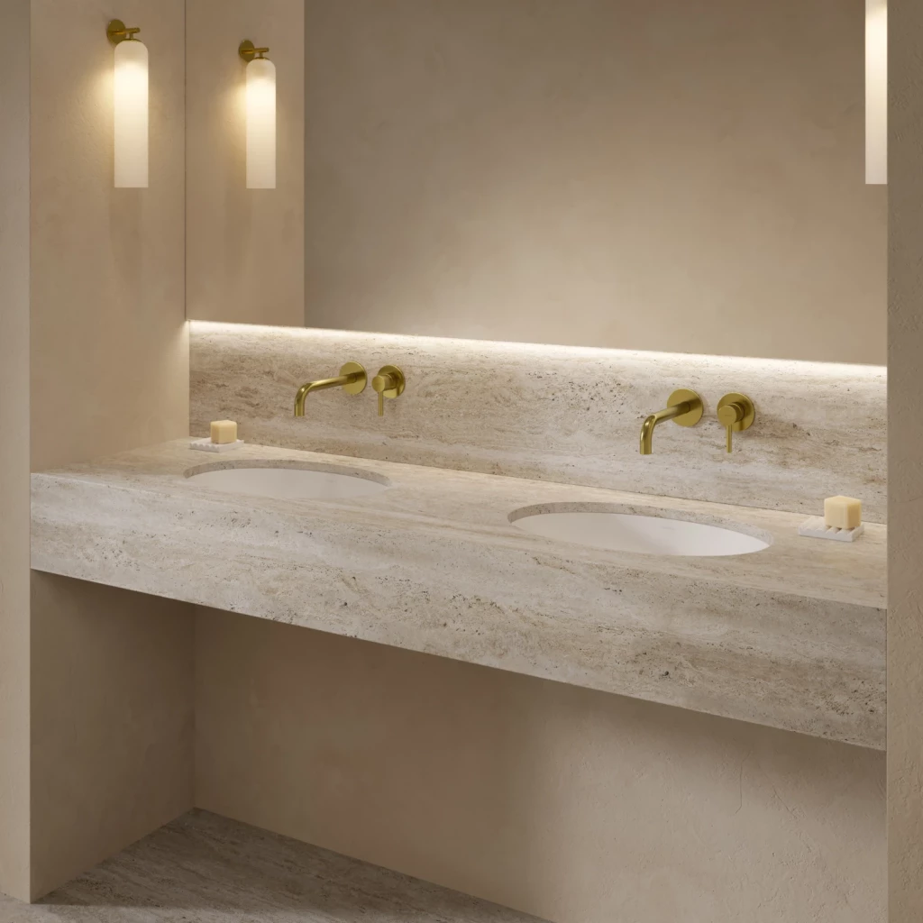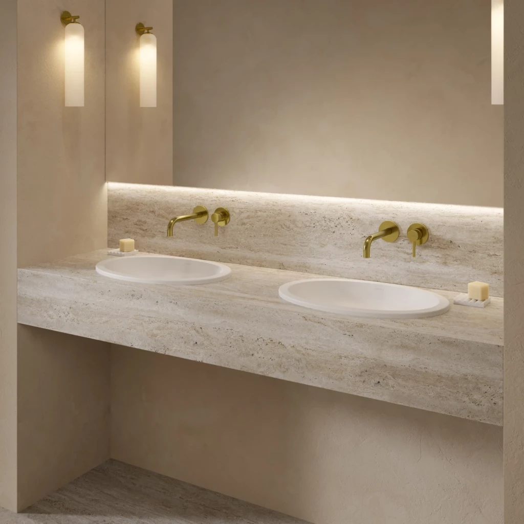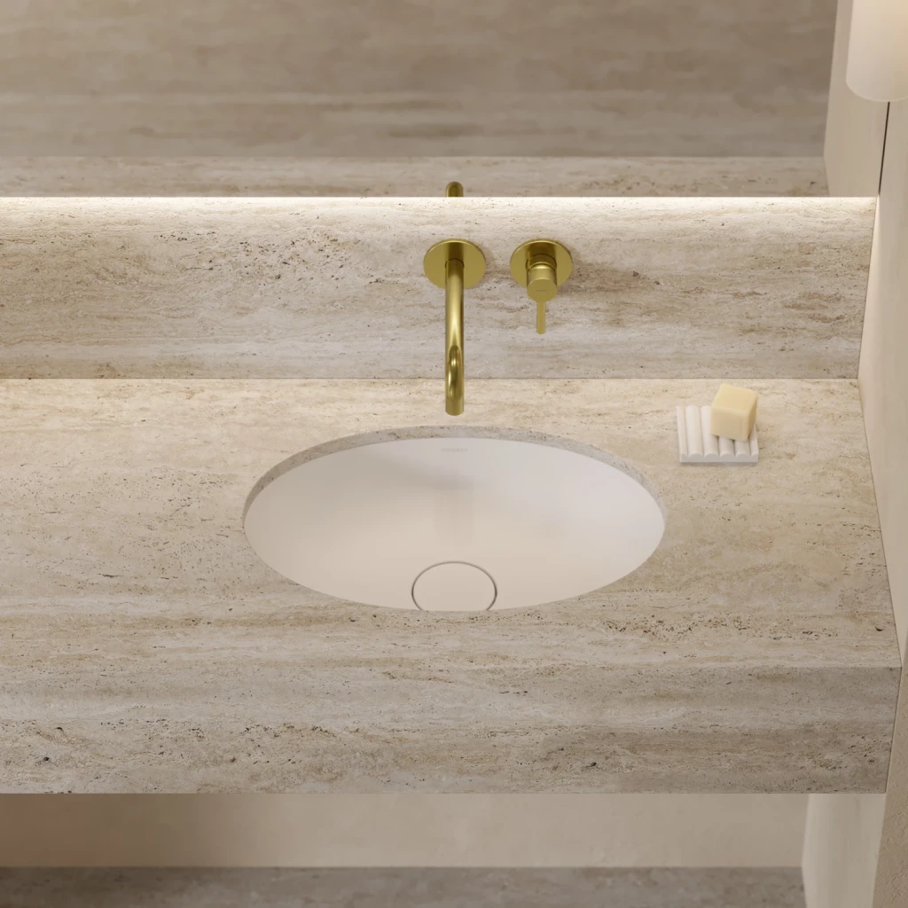 Umyvadlo pod desku z kolekce OMNIRES SHELL M+ se vyznačuje moderním eliptickým tvarem, který se zužuje k měkkému dnu. Jeho optimální rozměry jsou ideální pro koupelny s jedním i dvěma umyvadly. Precizně navržený okraj umožňuje instalaci pod desku a vytváří tak bezešvý a soudržný povrch. Umyvadlo lze také zapustit do pracovní desky, takže zůstane viditelný pouze minimalistický okraj. Obě montážní řešení nejen usnadňují každodenní údržbu, ale také optimalizují využití prostoru, díky čemuž je umyvadlo ideální volbou pro moderní a minimalistické interiéry.