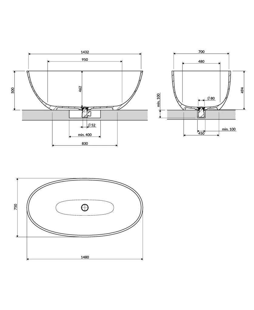 Volně stojící vana z kolekce OMNIRES SHELL M+ se vyznačuje moderním eliptickým tvarem, který se zužuje k měkké základně. Minimalistický tvar je zároveň lehký a pevný a vytváří efekt monolitu vytesaného ze skály. Vnitřní profil je navržen tak, aby zajistil pohodlí při koupání. Tělo je zakončeno masivními, precizně vyrobenými 2 cm silnými okraji. Vana se vyznačuje nízko posazeným designem, který zvyšuje pohodlí při samostatném vstupu a výstupu nebo při koupání dětí. Je vybavena praktickými prvky, jako je sifon s odpovídajícím zacvakávacím uzávěrem a centrálně umístěný odtok, který umožňuje pohodlnou relaxaci dvou osob ve vaně.