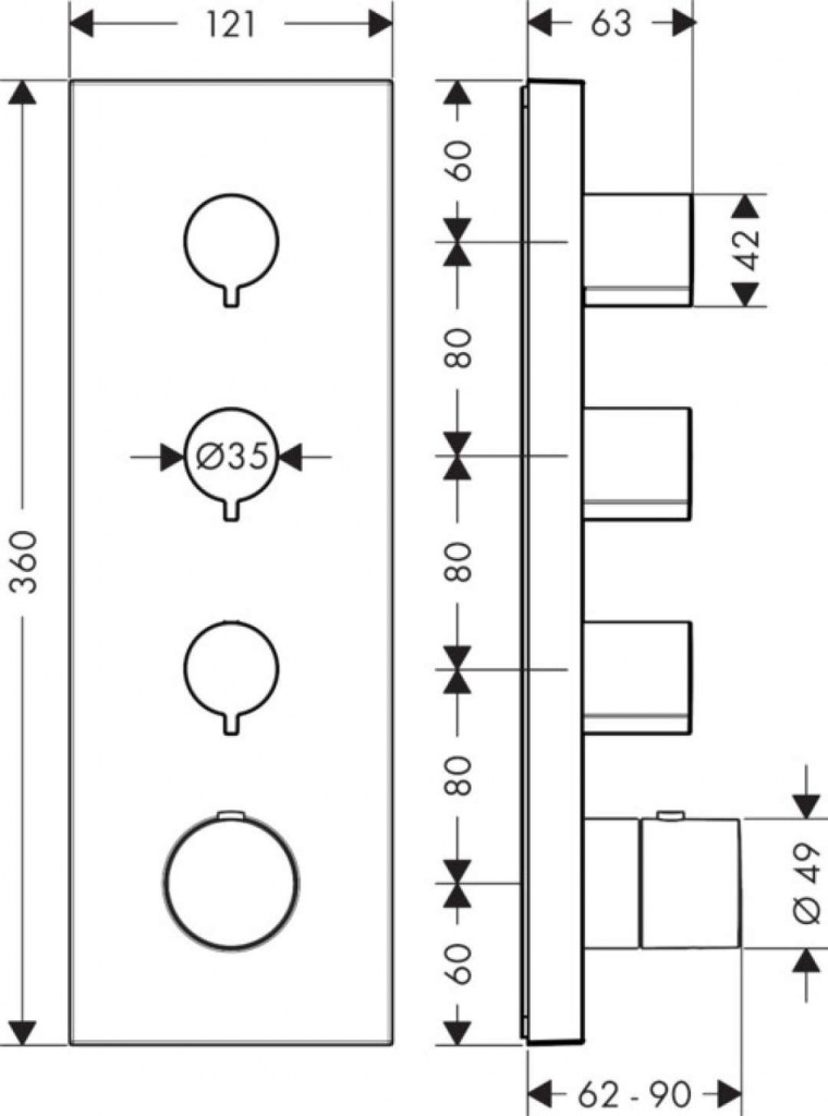 Vrchní sada termostatického modulu pro 3 spotřebiče bez tělesa