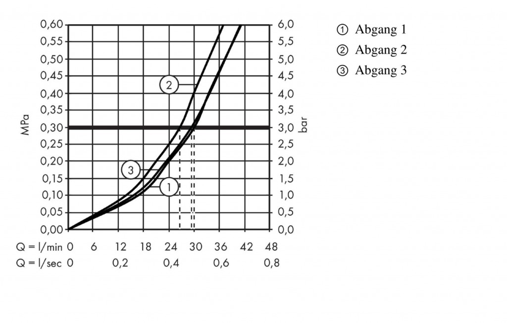 Uzavírací a přepínací ventil pro 3 spotřebiče bez tělesa