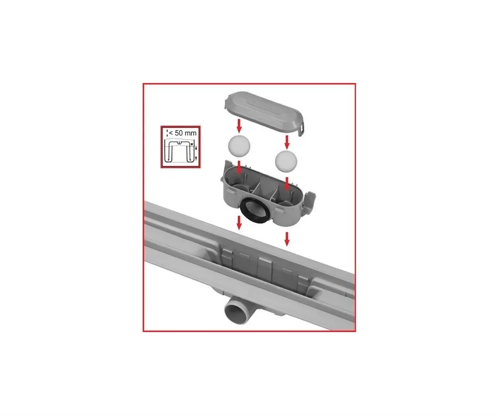 Alcaplast Zápachová uzávěra pro plastový žlab P065; Vlastnosti: Kombinovaná zápachová uzávěra SMART; Použití: Pro podlahový žlab APZ8, APZ9, APZ10; Technické parametry: Zápachová uzávěra kombinovaná s vodním sloupcem 29 mm; Průtok 31 l/min; Odolnost zápachové uzávěry proti tlaku 640 Pa; Rozsah dodávky: Zápachová uzávěra; Těsnění 2 ks; Kulička 2 ks
