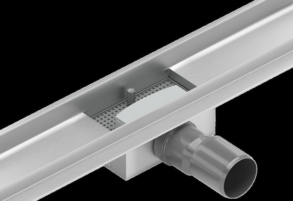 Plastový sifon s vyjímatelným filtrem na nečistoty je vhodný pro většinu lineárních žlabů.