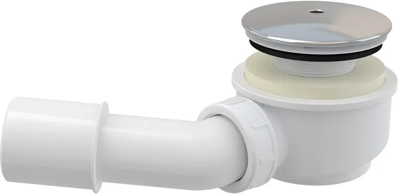 Alcaplast sifon pro sprchovéí vaničky 60mm SNÍŽENÝ v.65mm+koleno, chrom, 52l/min, Alca Plast, i pro keramické vaničky, nízký A471CR-60