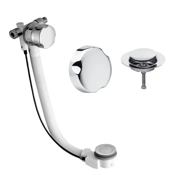 Vanová souprava s napouštěním, ovládání zátky pomocí bovdenového lanka. Rukojeť a zátka bílé.