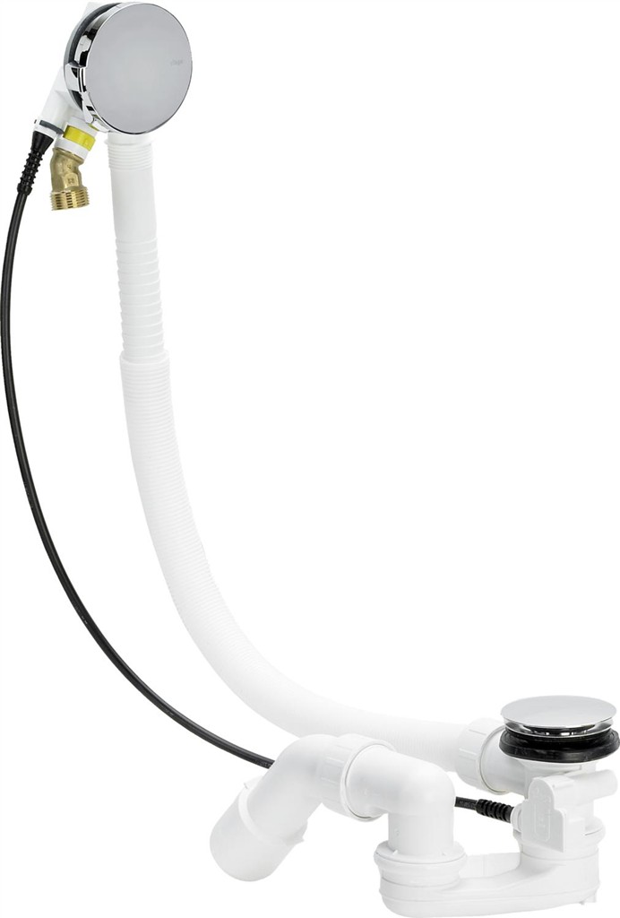 flexibilní přepadová trubka, pochromovaná otočná rozeta, pochromovaná kuželka ventilu, zápachový uzávěr, odtokový oblouk 45°, nerezový ventil