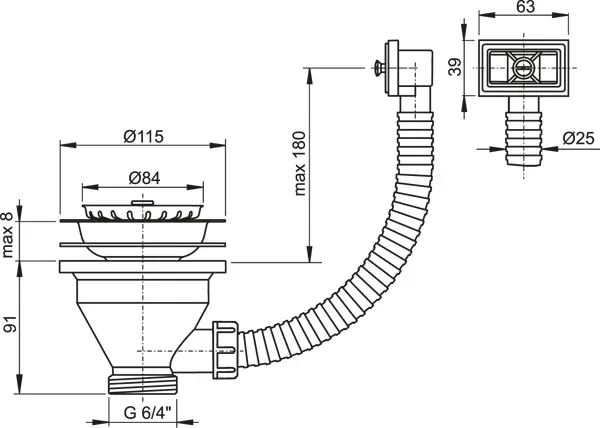 závit pro připojení k dřezovému sifonu 6/4"