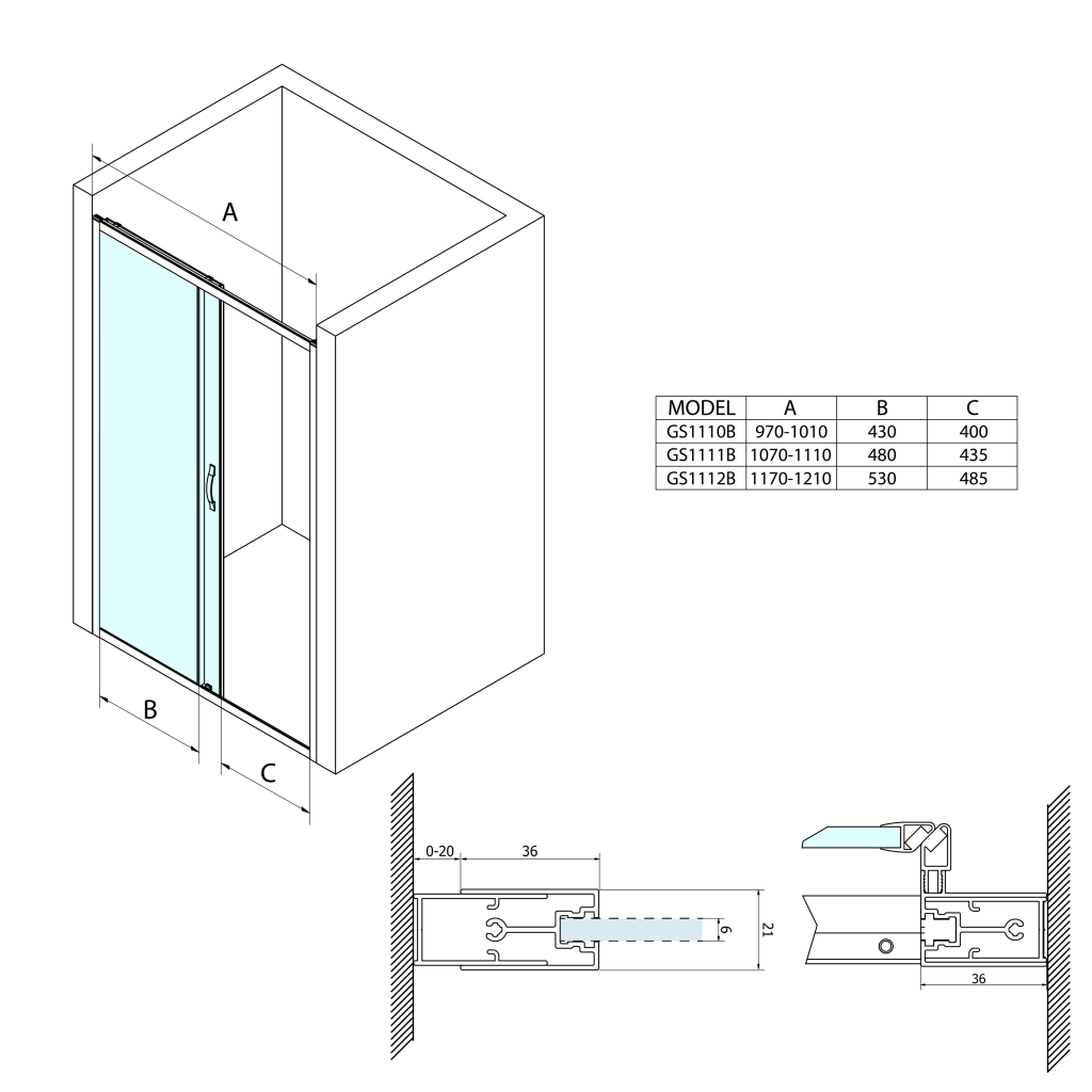 - Stěnový profil poskytuje nastavitelnost až 20 mm pro vyrovnání nerovností.