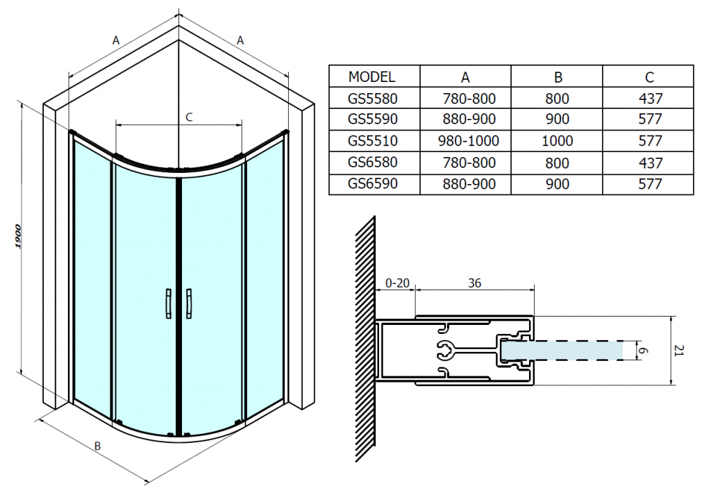 - Stěnový profil poskytuje nastavitelnost až 20 mm pro vyrovnání nerovností.