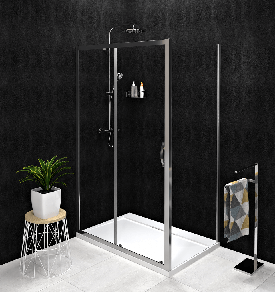 - Čtvercové a obdélníkové zástěny s rohovým vstupem vytvoříte spojením dvou posuvných dveří pro rohový vstup.