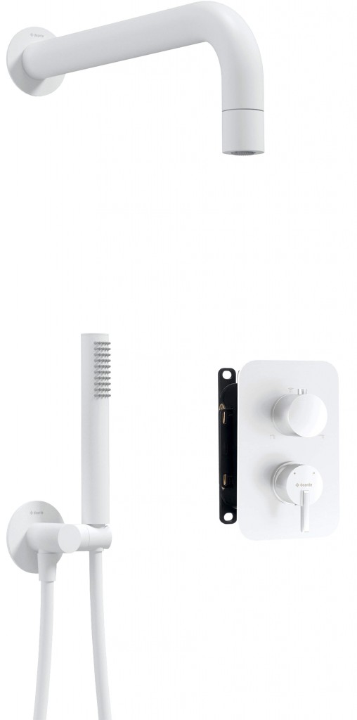 Sprchový set pod omítku má všechny potřebné prvky k vybavení sprchy. Vysoká kvalita použitých materiálů mnohokrát testovaných v laboratorních podmínkách zajišťuje bezporuchový provoz. Inovativní design a elegantní povrchová úprava upoutají pozornost a zapuštěná instalace opticky zvětší prostor. Tradiční řešení umožňuje získat prostor například pro přídavnou polici na kosmetiku nebo věšák. Díky tomu můžete snáze a rychleji uklidit celou místnost. Sada má směšovací BOX, kde si můžete sami nastavit teplotu protékající vody podle svých potřeb. Souprava má horní sprchovou hlavici se širokou, kuželovou sprchovou tryskou.