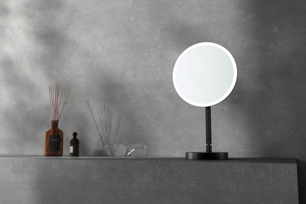 Kosmetické zrcátko série SILIA má vynikající design a praktické využití. To, co je odlišuje, je postupná změna barvy LED světla z teplého na studené a naopak. Zrcadlo je volně stojící a lze jej umístit do koupelny nebo na toaletní stolek. Lze je složit a sbalit na cesty nebo služební cesty. Zrcátko zvětšuje 3x a je ideální pro nanášení make-upu a přesnější kosmetické ošetření. Zrcátko má navíc pohyblivé rameno, takže si ho můžete nastavit do polohy, která vám nejvíce vyhovuje. Zrcátko má vestavěnou paměť, která vám umožní zapamatovat si poslední nastavení. Funguje bez připojení do zásuvky a nabíjí se jednou za 4-6 týdnů přes USB typu C.