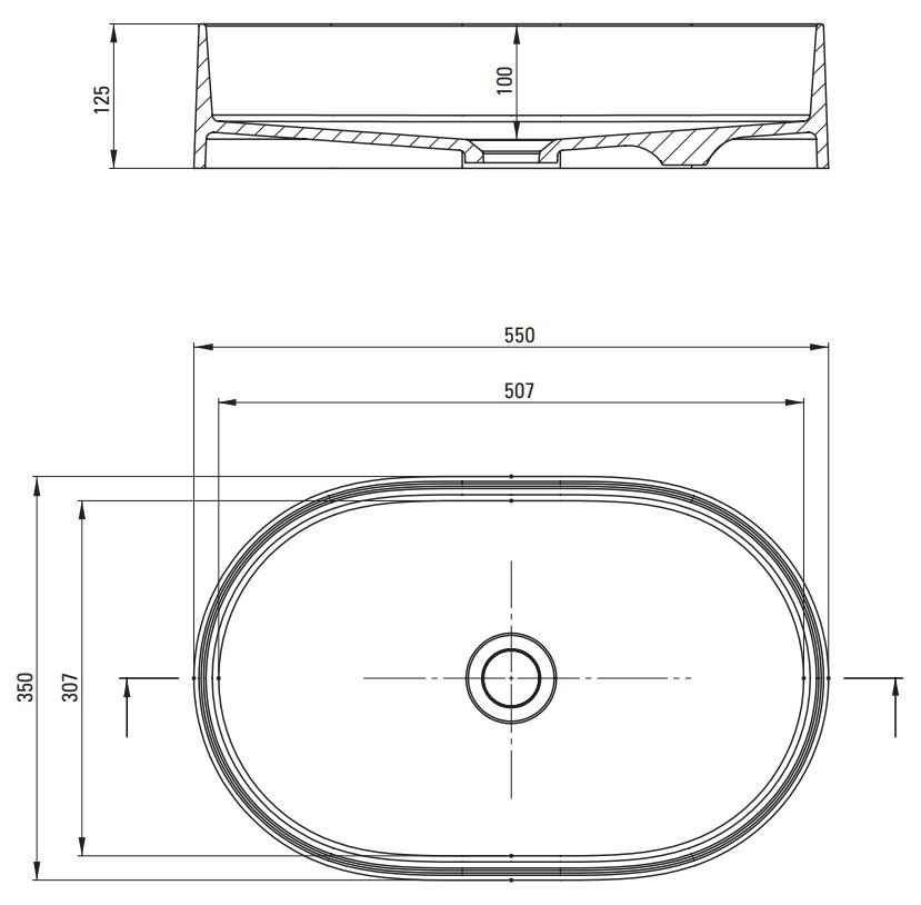 Samotné umyvadlo na desku je široké 55 cm, hluboké 35 cm a na výšku má 12,5 cm, což vybízí k tomu, že je možnost umístění dvou umyvadel vedle sebe /pokud vám prostor dovolí/. Umyvadlo nemá bezpečnostní přepad ani otvor pro baterii. Proto k němu vybírejte vysokou umyvadlovou baterii nebo podomítkovou umyvadlovou baterii. Důležité je vybrat správnou výpust. Vhodná je univerzální nebo určená pro umyvadla bez přepadu.